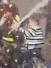 Мужчина в кофте в чёрно-зелёно-белую полоску