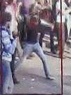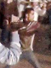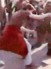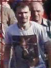Длинноволосый мужчина, одетый в чёрную рубашку с коротким рукавом, светло-коричневые штаны
