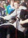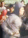 Толстовка с капюшоном, чёрный платок на лице